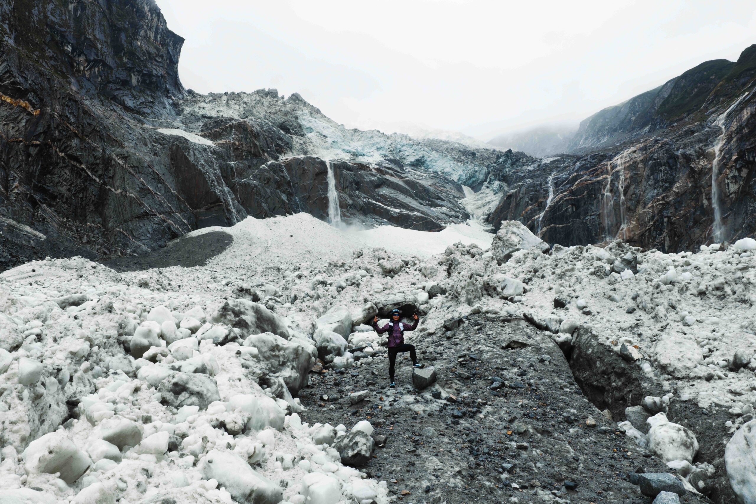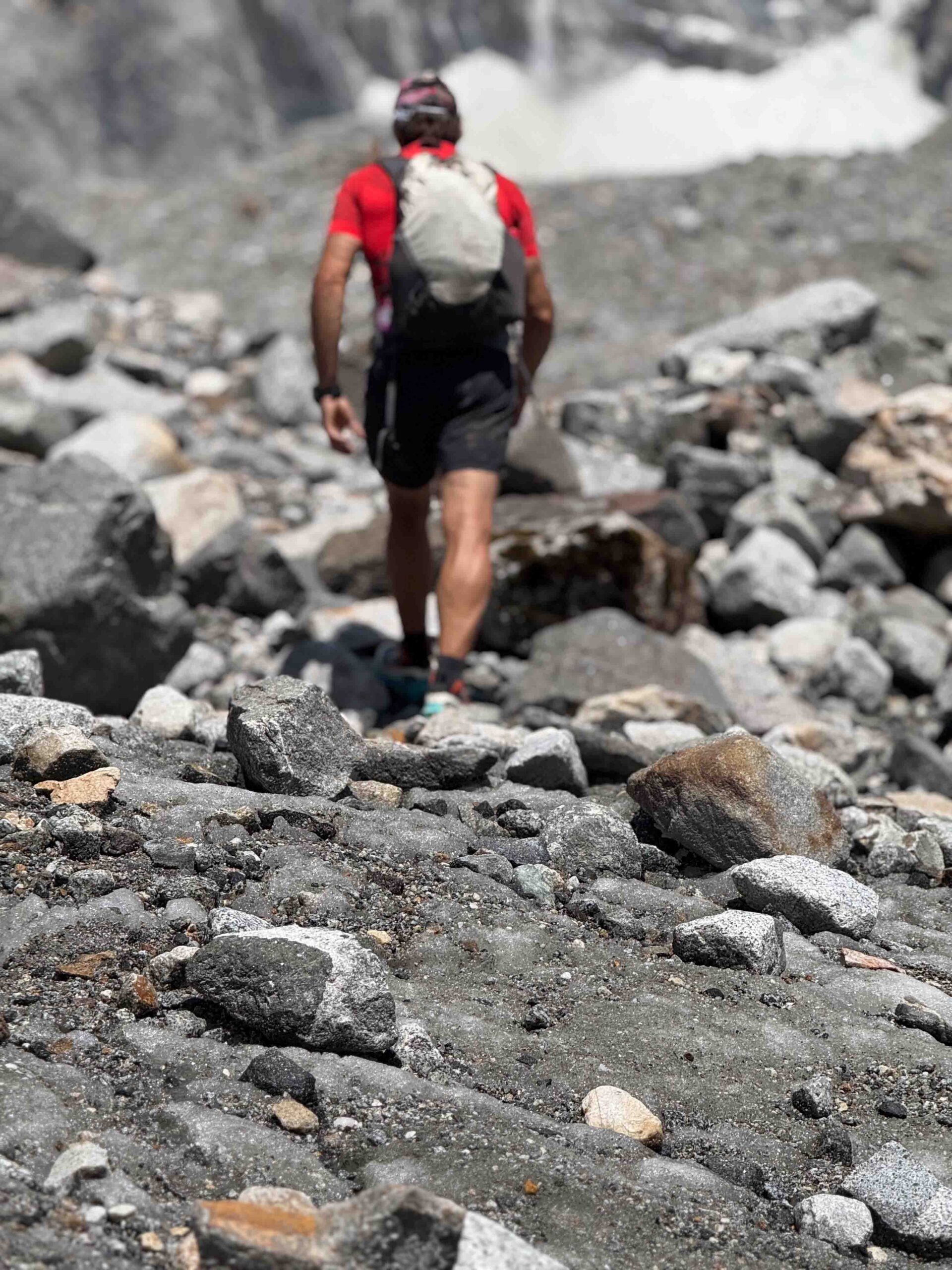 Uno de los momentos más intensos fue el ascenso por la morrena del glaciar Hailuogou, a los pies del monte Gongga. Se trata de una lengua de roca, hielo y sedimento que se extiende desde el corazón del glaciar, un terreno siempre cambiante que exige máxima concentración. Subir por allí fue tan duro como hipnótico. El silencio solo roto por nuestros pasos, la niebla abriéndose de repente para mostrar la imponente cara del Gongga… imágenes que difícilmente podré olvidar.